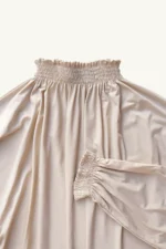 -25%This blouse features a loose fit with gathered details at the neckline and cuffs, adding a romantic touch.